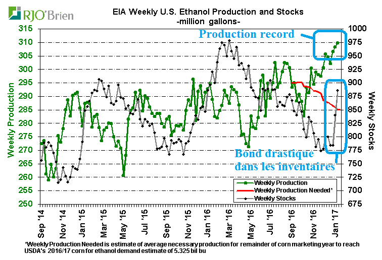 · Autre record de production d’éthanol, mais les stocks s’empilent
