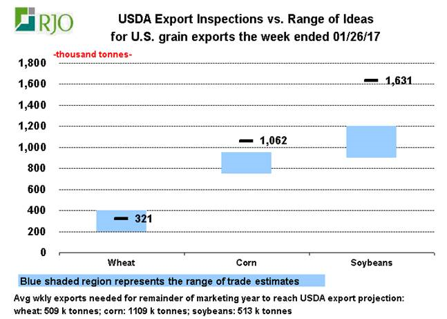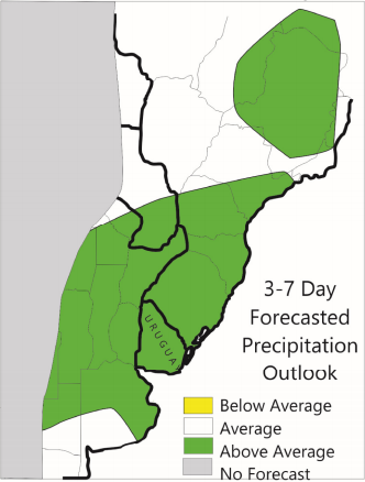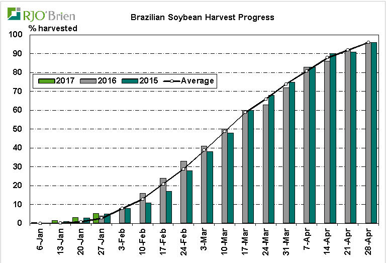 Amérique du Sud : les données sur la récolte des grains au Brésil en date de vendredi dernier nous démontrent un bon départ alors qu’on est en avance sur l’an dernier. Même chose concernant la récolte de maïs. La météo nous annonce de la pluie au Brésil dans les prochains jours, ce qui pourrait ralentir le bon rythme de récolte qu’on a présentement. En Argentine, la plantation de soja et de maïs est terminée et la pluie qu’on attend également sur cette région sera bénéfique pour la partie plus sèche au sud pays. La partie plus humide, au nord du pays, attend quelque précipitations pour les prochains 10-14 jours, mais rien qui pourrait nuire aux récoltes. Nous n’avons pas encore de données sur l’ampleur des dégâts causés par toute la pluie reçue plus tôt en janvier mais les premières indications nous laissent croire à moins de dommages que prévus.