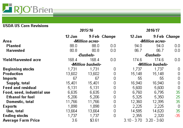 Plus tôt ce midi nous avions le rapport mensuel sur l’offre et la demande. Peu de surprises, on retient que le ministère en a profité pour augmenter les perspectives de consommation pour le maïs et le blé. Coté de l’Amérique du Sud c’est une mince réduction des récoltes de soja en Argentine car autrement les chiffres sont les mêmes qu’en janvier.