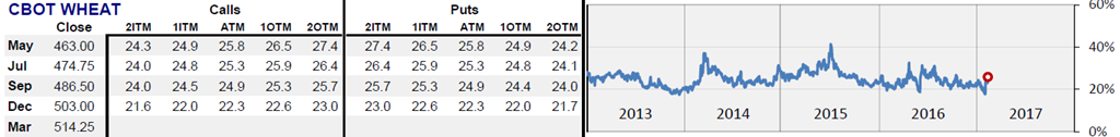 Coté grains, le marché semble confortable avec l’état actuel du bilan offre-demande. Les utilisateurs semblent laisser de côté la récolte record et mettent l’emphase sur la forte demande et les risques liés à la prochaine récolte (surface et rendement 2017). La volatilité a bondi la semaine dernière, mais elle demeure relativement faible comme c’est habituellement le cas en février.