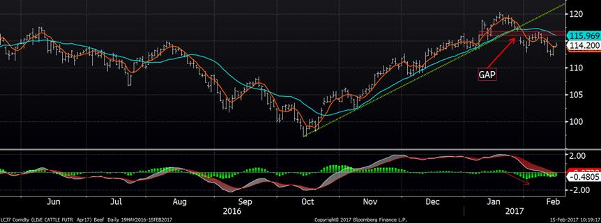Techniquement, le prix d’avril est allé tester à nouveau la résistance de 72.50 ¢/lb ce matin avant de rebaisser. Il faut s’attendre que si le prix cash continue de monter vers le 80 ¢/lb (ce qui est assez impressionnant en février!), le CàT d’avril devrait percer sa résistance tôt ou tard ce qui serait un signal d’achat. D’où la réaction du marché aux chiffres sur les découpes et le cash.
