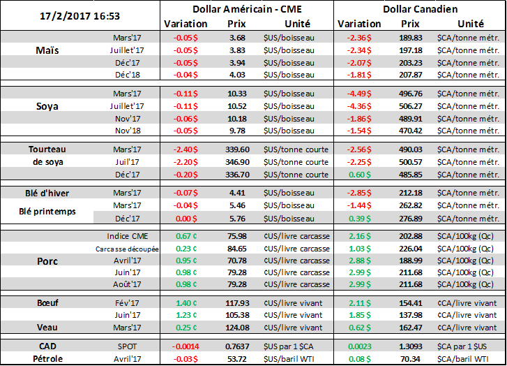 · Peu de changement sur les marchés, mais le prix des grains se dégonfle avant un weekend de 3 jours