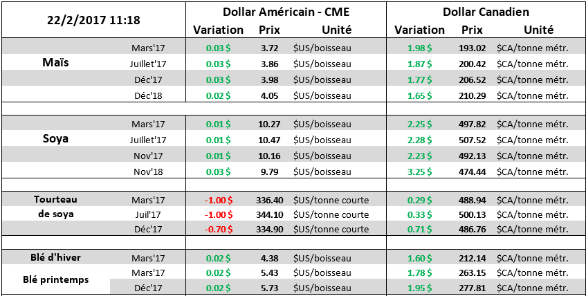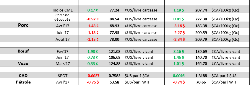 · Cattle On Feed : Aucune surprise, en ligne avec les attentes. Placement élevés à 11% versus 2016.