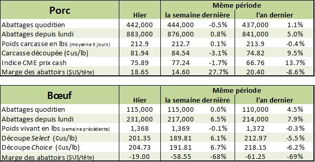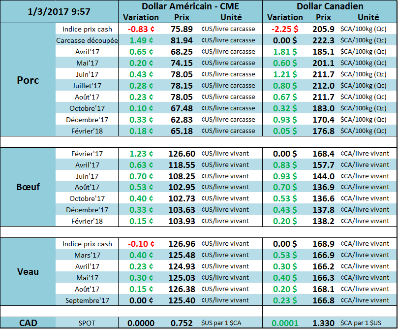 À 11h00 aujourd’hui, ce sera le Fed Cattle Exchange qui nous donnera l’heure juste sur la force du prix cash: https://www.fedcattleexchange.com/