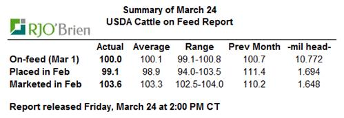 Le rapport Cattle-on-Feed d’aujourd’hui ne démontrait aucune surprise sur le nombre de bœuf en parc en date du 28 février. Il y avait 10.77 millions de bœufs en parc ce qui est pratiquement la même quantité qu’en février 2016 et est en ligne avec les attentes du marché. Il y a 1.69 millions de veaux d’embouche qui ont été placés en parc ce qui est 0.9% moindre que l’an dernier alors que les sorties de bœufs gras étaient de 1.65 millions têtes, représentant 3.6% de plus que l’an dernier. Au final, le rapport est neutre pour les prix.