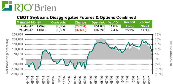 Soja : Les fonds réduisent de plus en plus leur position acheteur dans la fève. Retour au niveau de l’automne.
