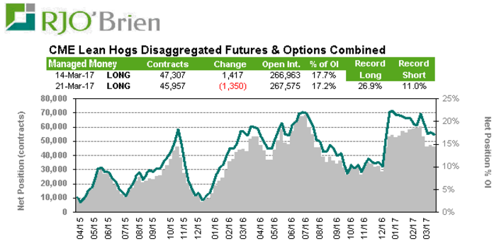 Lean Hog : Réduction mineure de la position d’achat, les fonds sont encore très présents dans le marché. Prendre garde si jamais des nouvelles négatives sur le prix font surface.