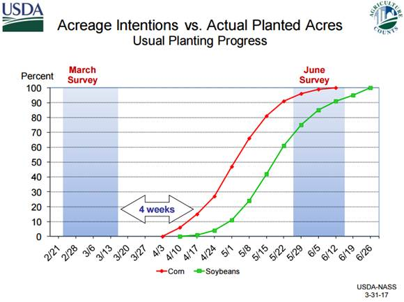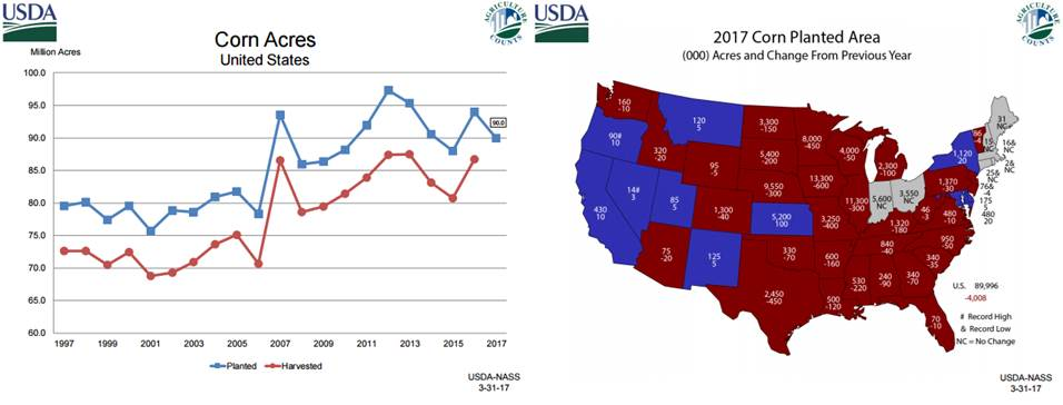 · Moins de maïs : 90 millions d’acres vs 94M 2016 et 90.9M « prévu »