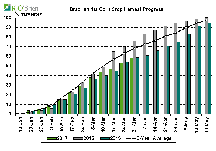 Progression des récoltes de mais (1ere récolte) : 58% ramassé, en retard.