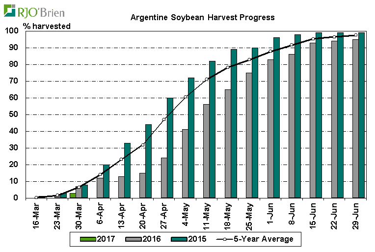 Coté Argentine, rien d'extravagant tout va bien sommes toutes en lignes avec les projections de l'USDA. Les récoltes sont au tout début, on commence à peine mais d'ici la fin du mois d'avril les récoltes seront bien avancée (70% pour le fève).