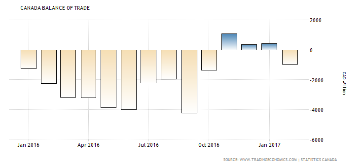 - Dollar CAD faible via balance commerciale canadienne de février (déficit)