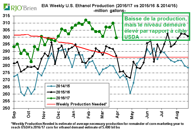 · Éthanol : baisse marquée de la production (saisonnier)