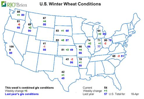 · Amélioration de la condition des cultures de blé d’hiver à 54% bonne/excellente