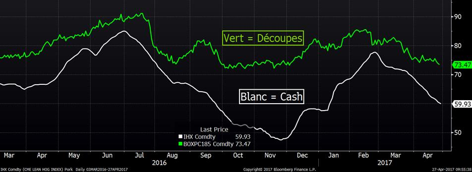 Prix des découpes et de l’indice CME du prix cash