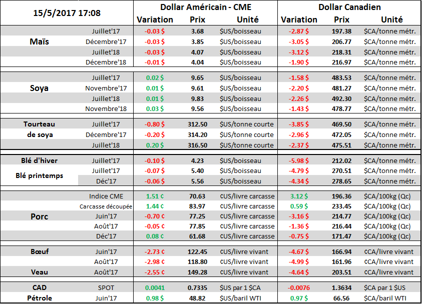 Grosse semaine de semis aux États-Unis si bien que l’avancement est entièrement dans le temps. Cette semaine il y aura des précipitations mais l’étude des cartes météo montrent des fenêtres bien claires pour poursuivre le travail au champ.