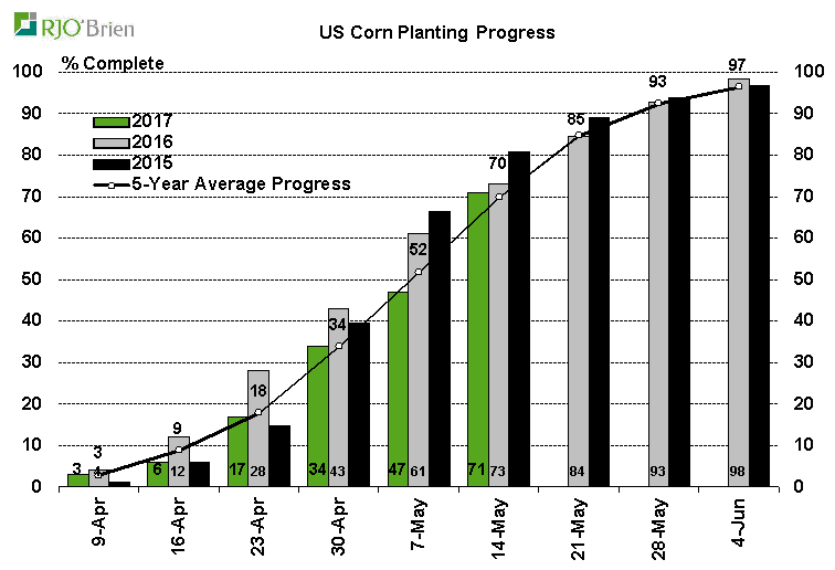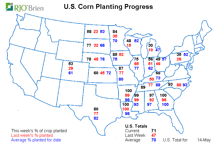· Semis de maïs : 71% complété vs 73% l’an passé et 70% en moyenne