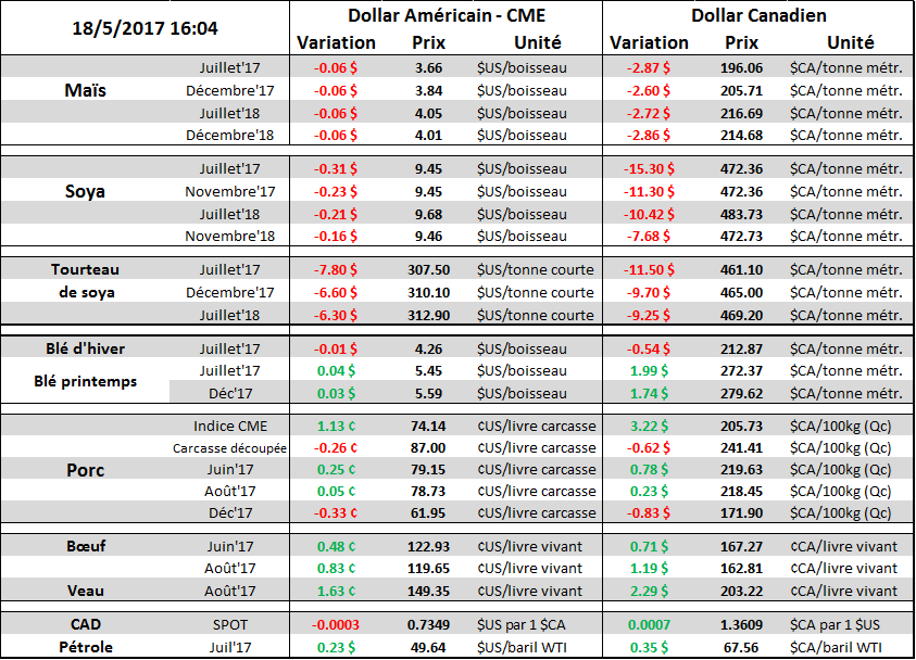 · Impact immédiat sur la fève CBOT en forte baisse de 30 cents