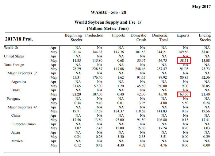 Bilan USDA – Le programme d’export de soja BR est plus important que celui des USA, 58 million de tonnes vs 63 MMT.