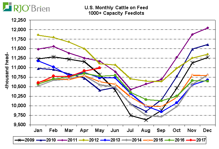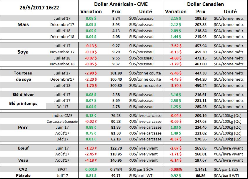 - 11 millions de bœuf dans en engraissement au 1er mai, c’est une hausse de 2% vs 2016 est au-dessus des estimés. Offre plus abondante que prévu = facteur négatif pour le prix.