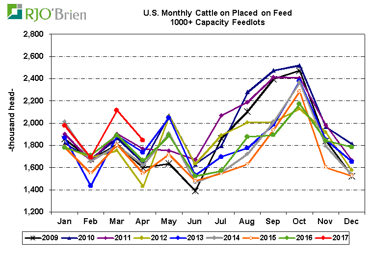 - Placement en avril à 1.85 million de tête, c’est une hausse majeure de 11% par rapport à 2016 et nettement au-dessus des attentes. Plus de placement, plus d’offre = facteur négatif pour le prix.