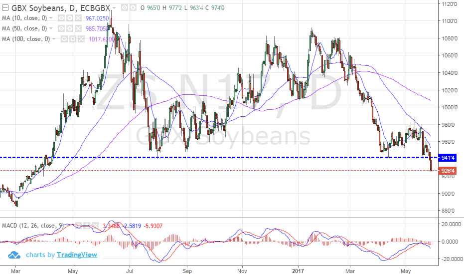 Très difficile semaine dans la fève soja. Les supports de la dernière année ont été brisés; 9.4150 a cédé sous la pression de vendeurs. Techniquement il y a très peu de point de repères, si ce n’est que des creux de l’hiver 2016 à 8.80$