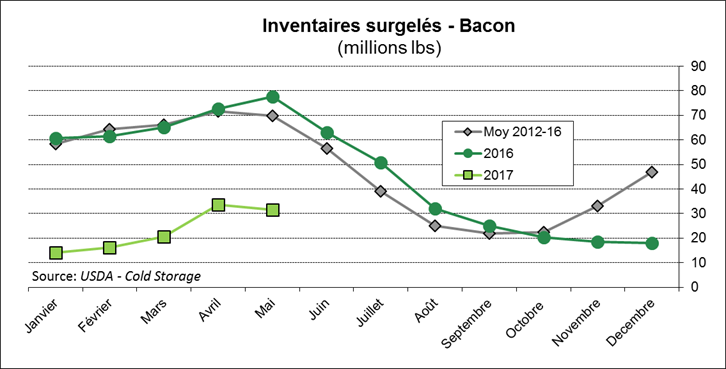 · Inventaires surgelés de bacon : 60% de moins que l’an dernier