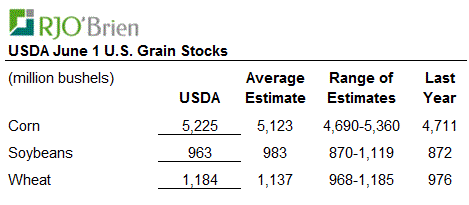 Blé : Plus de stocks que prévus à 1.18 milliard de boisseaux et aucun changement d’acréage de blé d’hiver à Prix à +0.24 $/boisseau à 5.19$ sur septembre