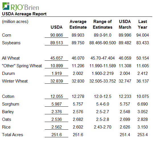 Blé de printemps : Moins d’acréage que prévu à 10.90 millions acres à Prix à +0.45 $/boisseau à 7.86$ sur septembre