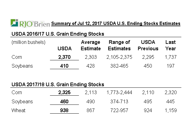· Pas de changement dans les prévisions de rendement maïs (170.7BPA) et soja (48 BPA)