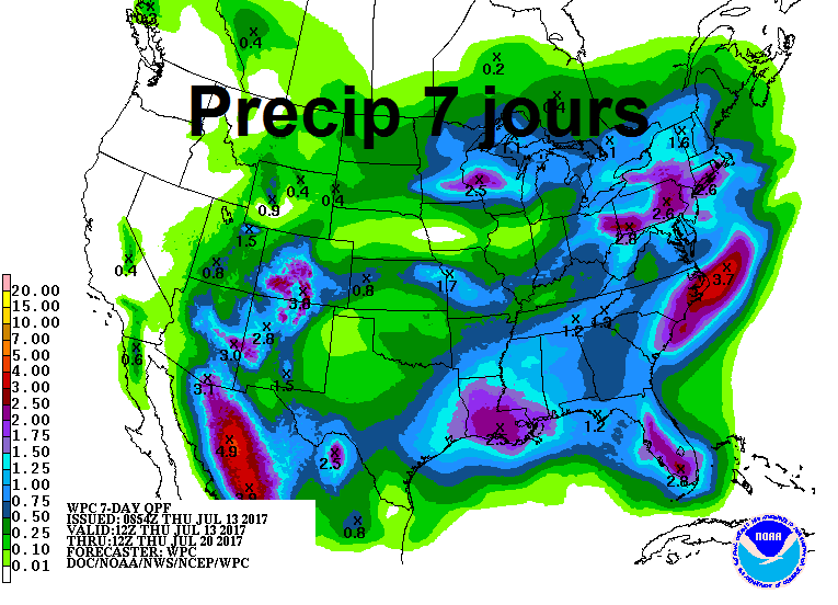 En fait, comme je viens de le mentionner, plein de raisons peuvent expliquer la baisse sévère qu’on observe et c’est la chimie du CBOT qui a parlé aujourd’hui. Après tout nous sommes à l’été et la nervosité du marché est à son sommet. Le rallye des deux dernières semaines est intimement lié aux cartes météos et à la possibilité de voir un rendement plus faible à cause de la chaleur et du manque d’eau. On a donc retiré un élément important : c’est la fin de la canicule et de la météo apocalyptique. Quand le marché voit « chaud et sec » dans le forecast, naturellement les prix s’ajustent. C’est un peu comme un signal d’alarme : au début il y a une petite lumière qui s’allume, après ça peut faire beep beep, ensuite le son devient plus fort, puis plus fort, à un certain moment donnée ça sonne ca vibre ca flash il est rendu trop tard et le dommage est fait. C’est ça qui s’est passé selon moi : les cartes météos ont montré de la chaleur et du temps sec. Par contre c’est l’été, il ne faut pas trop s’étonner si une canicule passe. C’est normal. La difficulté c’est qu’on ne sait pas combien de temps elle va s’installer et comment chaud il va faire. C’est le premier signe, le beep-beep qui a poussé les prix à la hausse dernièrement.