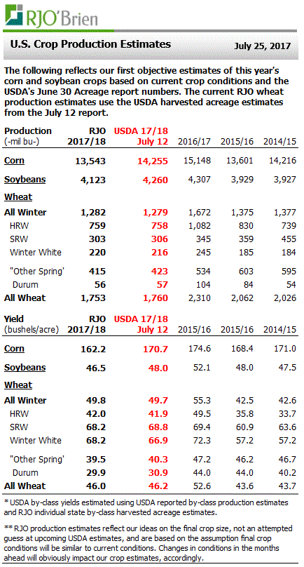 · Prévisions de R.J. O’Brien: le rendement des cultures 2017/18 sera sous la tendance à long terme aux É.-U.