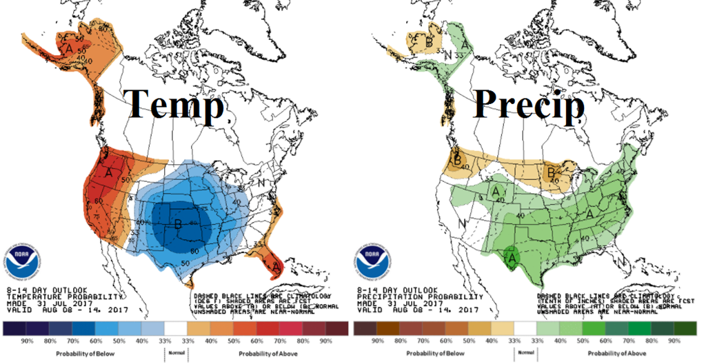 On pourrait dire que c’est Turnaround Tuesday, que les fonds ont vendu des contrats et que cela a eu un impact sur l’ensemble des marchés. Je trouve que c’est souvent une raison utilisée à outrance pour tenter d’expliquer chaque mouvement, à chaque jour. Nous sommes à une période de l’année très volatile ou chaque jour on doit recalculer l’offre-demande afin d’évaluer les inventaires de fin. Le rapport sur la condition des cultures hier soir donnait l’information comme quoi la situation dans le soja s’améliore. En plus les cartes météo pointe vers des conditions plus clémente pour le remplissage des gousses; précipitations et absence de chaleur accablante. Est-ce que ça veut absolument dire que la récolte est faite et qu’elle sera abondante? Non. Ça veut juste dire qu’en ce moment les chances qu’elle se dégrade significativement dans les prochaines semaines sont plus faibles.