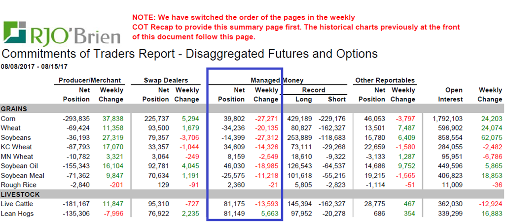 C’est sans grande surprise qu’on apprend que les fonds ont vendu les grains cette semaine. Par contre ce n’est pas une liquidation massive car on a déjà vu des ventes beaucoup plus agressive que ça. Somme toutes les fonds ne possèdent pas une position dites extrême, peu importe le type de grain. Ils sont légèrement acheteur de maïs et légèrement vendeur de soja et de blé. Si la position des spéculateurs était une saveur de chips, ça serait nature. Pas de sel. Pas de beurre. Accompagné d’un 7up flat.