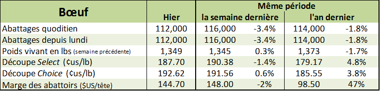 Prix du CàT de boeuf sur février 2018