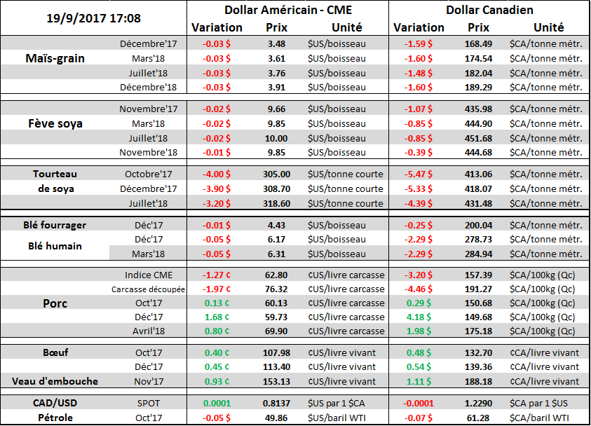 · Soja: rendement à 2.8 tonnes à l’hectare vs 3.2 en 2016