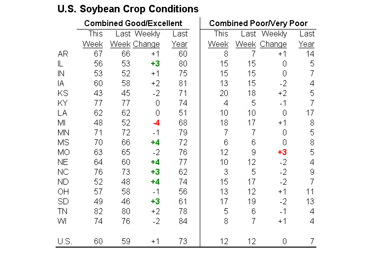 On continu de suivre la progression des récoltes. Je l’ai déjà dit et le répète, à ce stade-ci de l’année c’est complètement inutile de suivre les indices de qualité bon/excellent car cela ne veut plus rien dire! C’est beaucoup plus pertinent de suivre le progrès des récoltes à savoir si le grain sort vite des champs.