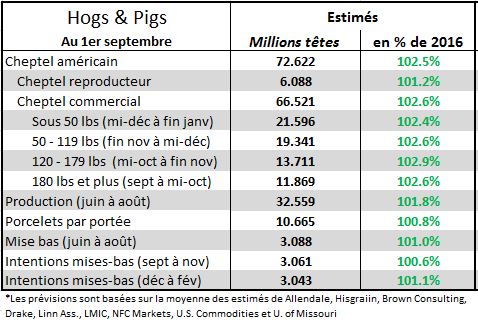 - Cheptel commercial 120/179lbs prévu en hausse de 2.9%