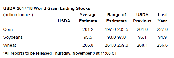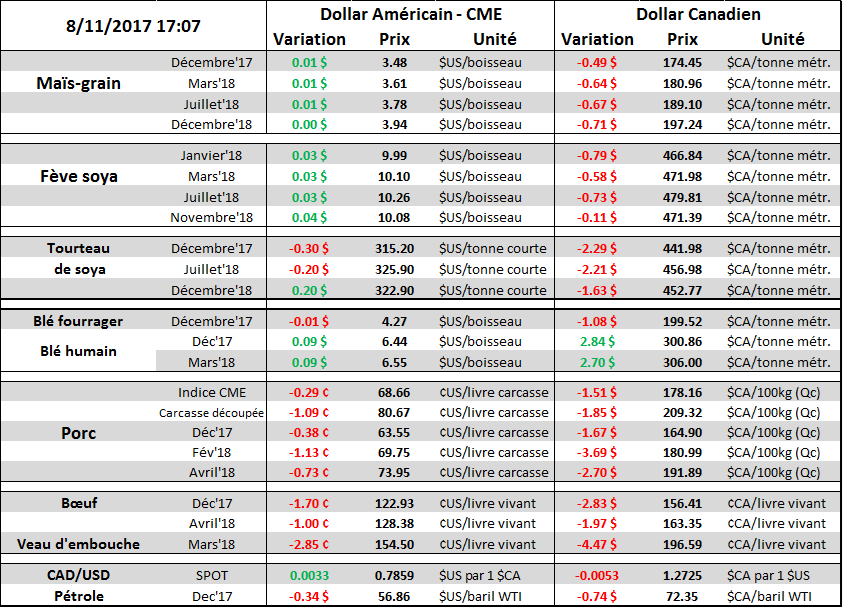 Demain midi l’USDA va mettre à jour ses prévision d’offre et de demande. Fondamentalement il n’y a pas eu d’énorme modification au niveau de la demande depuis le rapport d’octobre alors les révisions devraient être somme toutes mineures au niveau de la consommation. Il semble y avoir un biais pour une révision haussière des rendements de maïs et donc la taille de la récolte pourrait être plus importante que le mois dernier. L’exportation tant pour le maïs que pour la fève est un peu plus faible que les projections mais l’année est jeune et il serait étonnant de voir une coupure massive dans ce secteur. Une révision est possible par contre. En contrepartie d’autre secteurs de la demande compense pour le ralentissement de l’exportation alors il ne serait pas étonnant que l’USDA échange quatre trente sous pour une piasse.