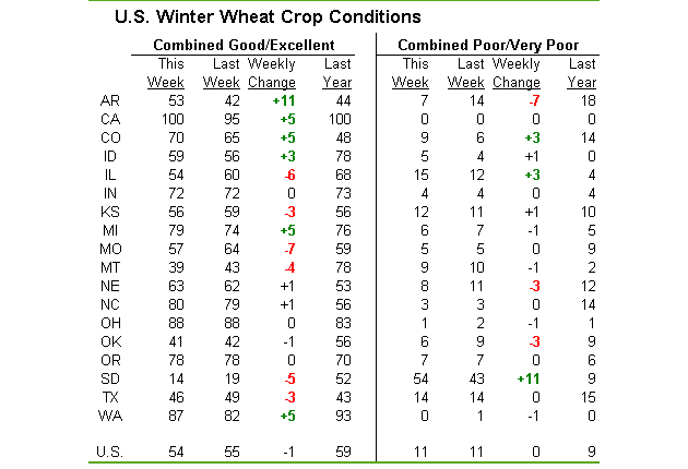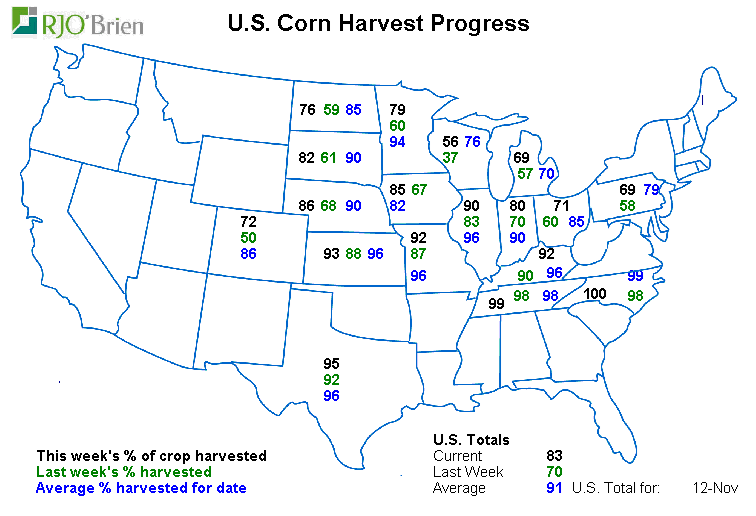 - Maïs : 83% récolté vs 70% la semaine passée et 91% en moyenne