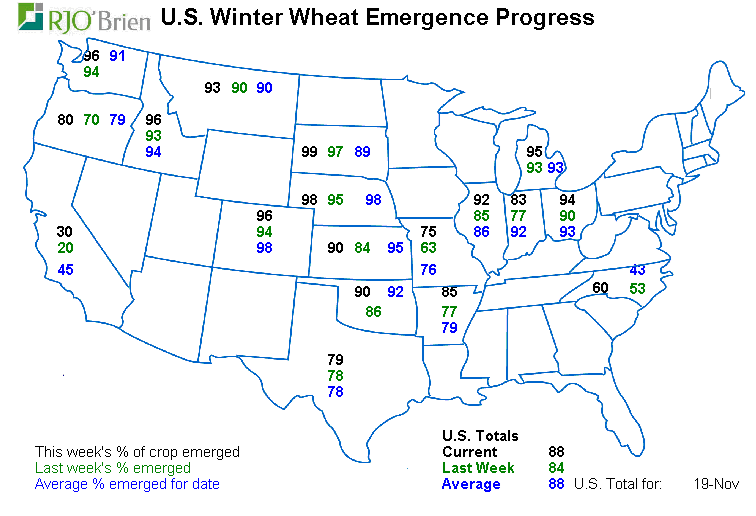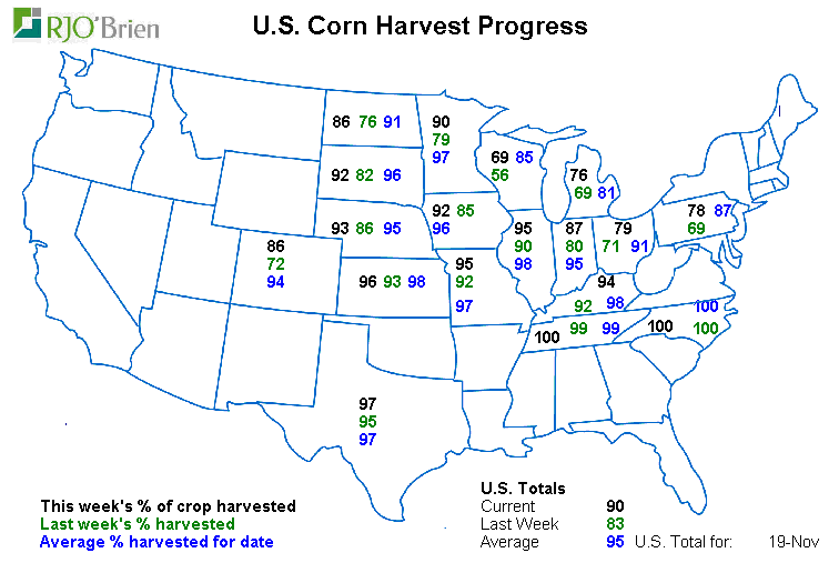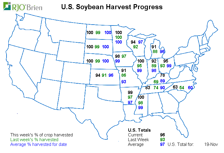La récolte U.S. est pratiquement finie, je ne vois pas beaucoup à dire sur le sujet. Je mets les cartes et tableaux plus bas.