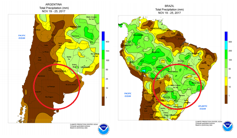 Étant donné que la saison est jeune, le marché réagit en faisant monter les prix mais faites attention car une semaine de pluie et les prix peuvent revenir vite. Le jeu de serpent-échelle du marché de météo est amorcé en Amérique du Sud.