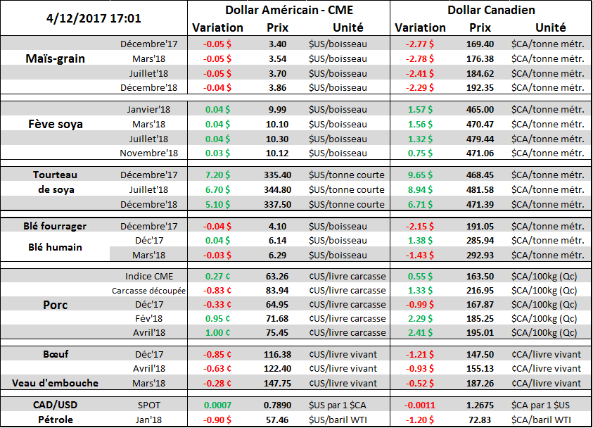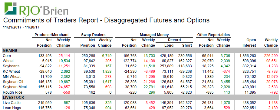 Spéculateur : quelques modifications mineures mais les fonds demeure essentiellement très vendeurs de maïs et de blé et acheteurs de soja (surtout le meal)