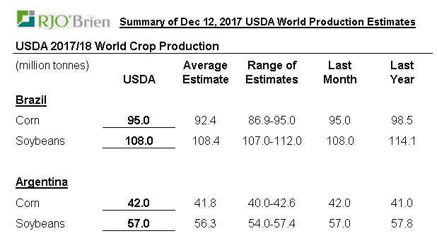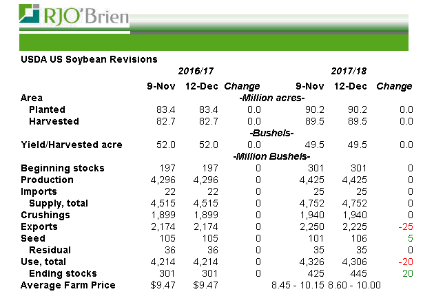 L’USDA n’a pas réellement changé la structure du marché cet après-midi. Sommes toutes les modifications du bilan offre-demande touchent uniquement le côté « demande » alors que le ministère publiera en janvier les résultats finaux des récoltes 2017-18 (rendement + surface).