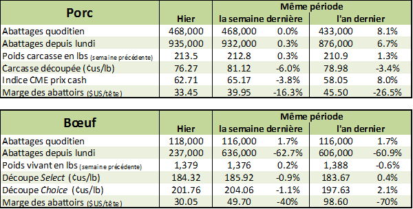 Le prix du porc a légèrement remonté aujourd’hui après que les estimés du rapport Hogs & Pigs du 22 décembre fût publiés. En effet, si la moyenne des estimés s’avère exacte, le cheptel de porc aux États-Unis au 1er décembre devrait s’approcher du +3% (+2% en abattage et +1% en poids) pour le début 2018 ce qui est moindre que les projections de l’USDA à +4.5% dans le rapport offre et demande. Il reste à voir le résultat ce vendredi à midi.
