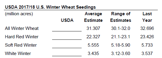 - Blé : ensemencement blé hiver prévu à 31.3 millions acres