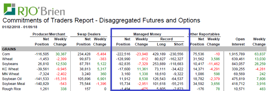 Le deuxième vient de la position des spéculateurs qui est fortement vendeur. À ce point ci, je pense qu’il devient de plus en plus difficile de continuer à vendre les grains et éventuellement ils vont se mettre à couvrir leur position. À priori ils devraient racheter leur contrats graduellement et non violemment mais tout de même je pense que c’est une question de temps avant qu’ils décident de lâcher prise. Ils ont tendance à être acheteur de grain à l’aube de la saison de cultures aux USA donc possiblement d’ici le printemps/été on pourrait voir un changement dans leur position. Actuellement ils sont court 222K contrat de corn et court 92K contrats de fève soja, soit une position de vente significative sur le marché. Je vois leur position comme un facteur positif dans les semaines/mois à venir quand ils vont racheter leurs contrats.