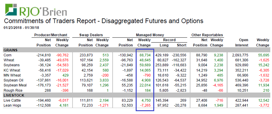 Enfin, un peu de mouvement! Avec la hausse des prix qu’on connait depuis quelques séances, l’analyse technique des graphiques qui pointent par en haut, les cartes météos chaude et sèches de l’Amérique du sud je commençais à me dire que mon bouillon de spéculation commençait à sentir le rachat de contrats. Bingo. À l’heure comme le train de 5 heures. Les fonds ont racheté 88 milles contrats de bedingue, 48 milles de blé, 60 milles de fève soja et 22 milles de tourteau.