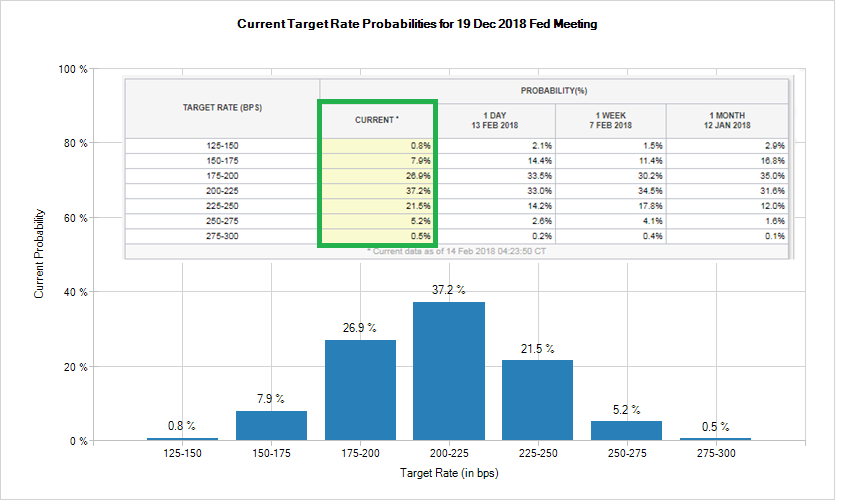 C’est assez étonnant car les anticipations des taux d’intérêt américain ont grimpé hier, et même aujourd’hui. Par exemple, les investisseurs estiment que la Fed augmentera les taux de 25 points de base dans son prochain meeting en mars. La probabilité est passée de 76% à 83%. Et même pour le plus long terme quand je regarde la courbe des taux (Fed Fund futures) les probabilités penchent tous vers un resserrement des taux. La possibilité d’avoir une 4e hausse cette année aux USA est passée de 14% à 21%. J’ai déjà de moins en moins de cheveux je ne peux pas commencer à me frotter le derrière de la tête comme ça à tous les jours…