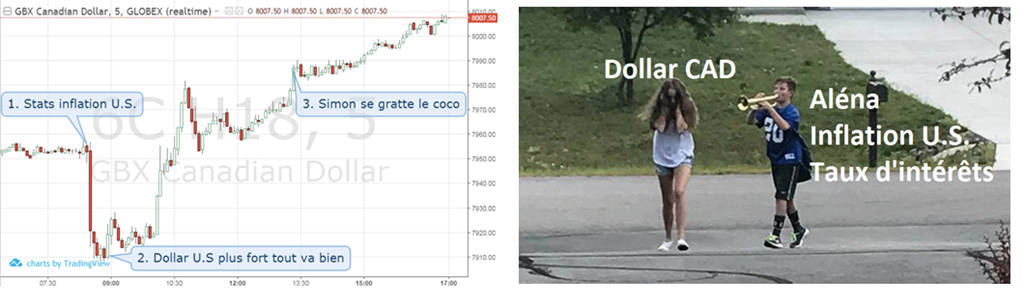 Journée très mouvementé sur les marchés financiers. Beaucoup de questions se posent, moi-même je me gratte le derrière du coco. Ce matin les statistiques d’inflation aux USA sont sorties plus élevé que prévu. Plus d’inflation = plus forte probabilité de hausse des taux d’intérêt = hausse de la valeur du dollar U.S. = recul de notre monnaie canadienne. Tout est cohérent. En fait cette cohérence a duré a peu près une heure ce matin. Bravo…