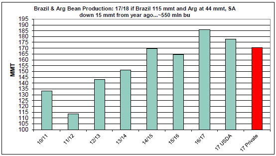 Encore des hausses des hausses et des hausses qui sont dues à la météo et récolte en Argentine. Aussi vu qu’on est le 1er du mois les gestionnaires de portefeuille habituellement rebalance les positions et je parie qu’ils ont augmenté leur exposition dans les matières premières. Les traders essayent de jours en jours de déterminer la taille de la récolte en Amérique du Sud. On sait que les récoltes seront beaucoup plus faible en Argentine, mais c’est mieux au Brésil (quoi c’est slow à sortir du champ). On cherche donc à connaitre la production totale. Au Brésil les firmes privées évaluent à 114 MMT (108 en décembre, +8MMT) et en Argentine on est à 45 MMT (57 en décembre, -12MMT). Si je combine les autres pays comme le Paraguay et l’Uruguay j’obtiens quand même une baisse de production d’environ 15MMT par rapport à l’an dernier. Heureusement aux USA nous avons des surplus d’environ 7 million de tonnes pour éponger une partie de la baisse des inventaires. À mon avis, tant et aussi longtemps que le marché ait une meilleure idée de la production en Argentine, est-ce plus 50MMT ou 45MMT ou 40MMT ou 35MMT, les traders surtout les fond de spéculations vont conserver et défendre leur position d’achat.